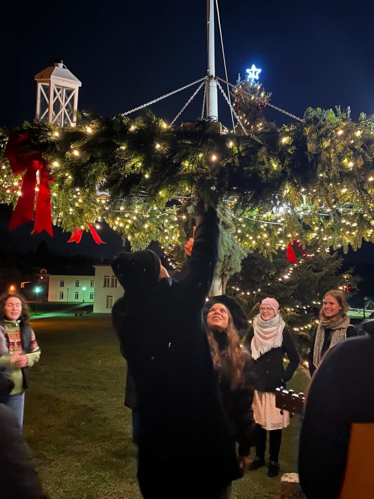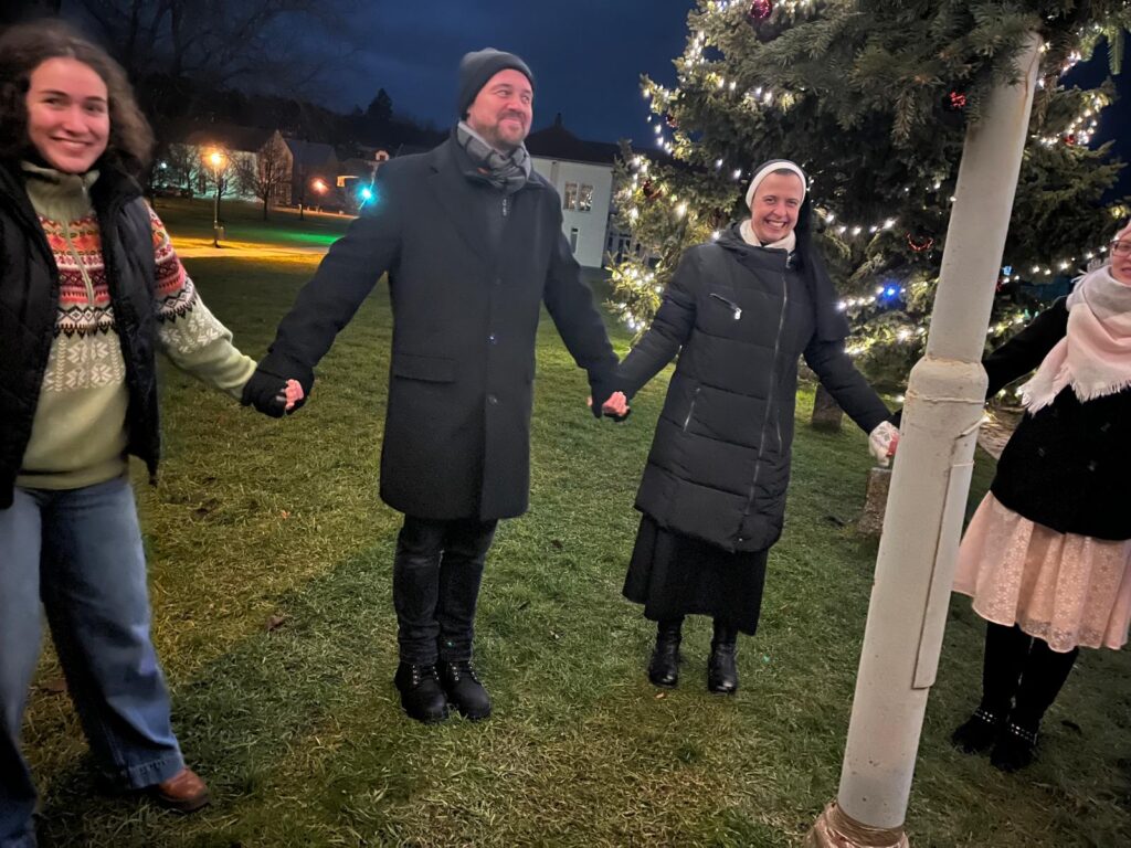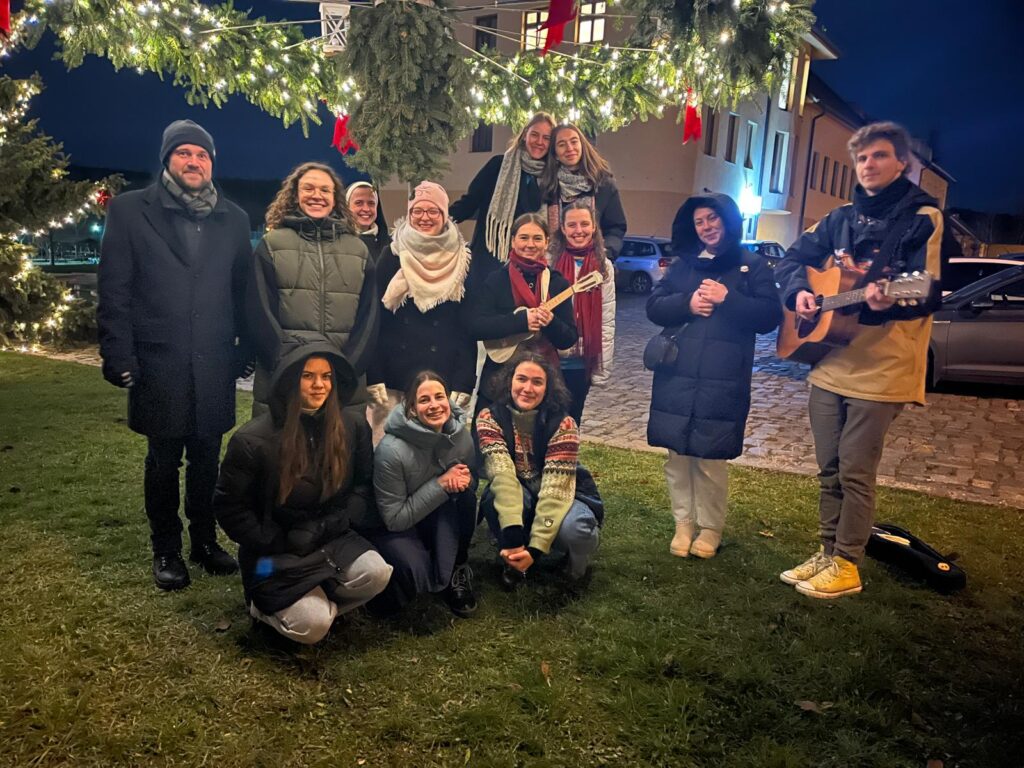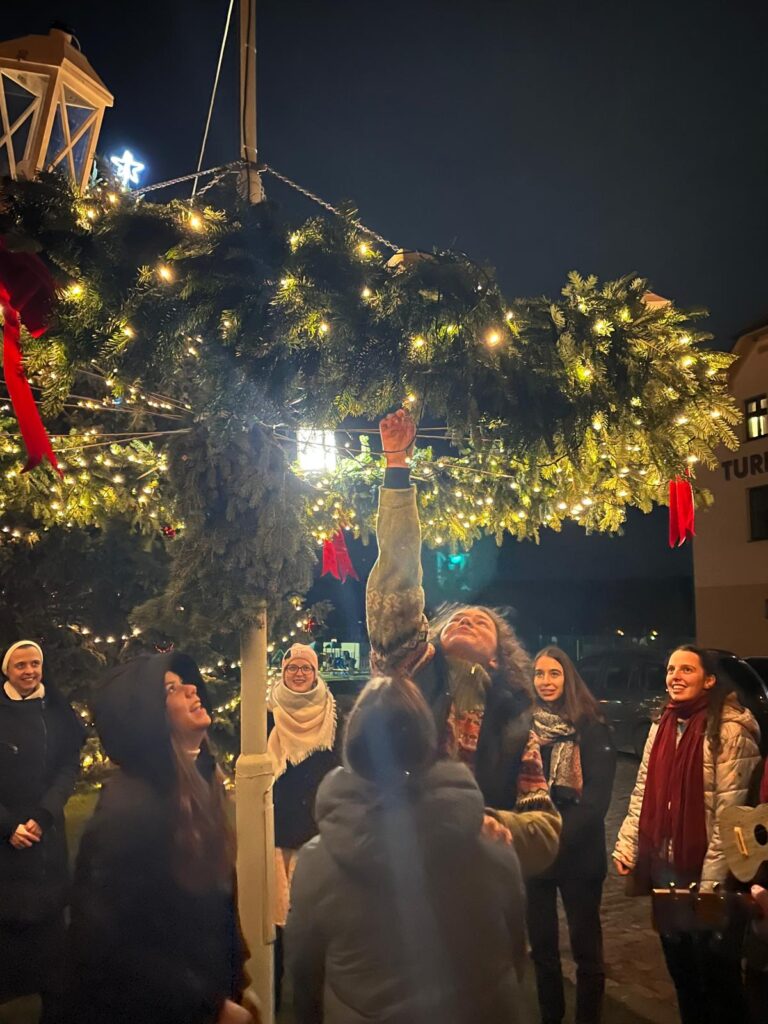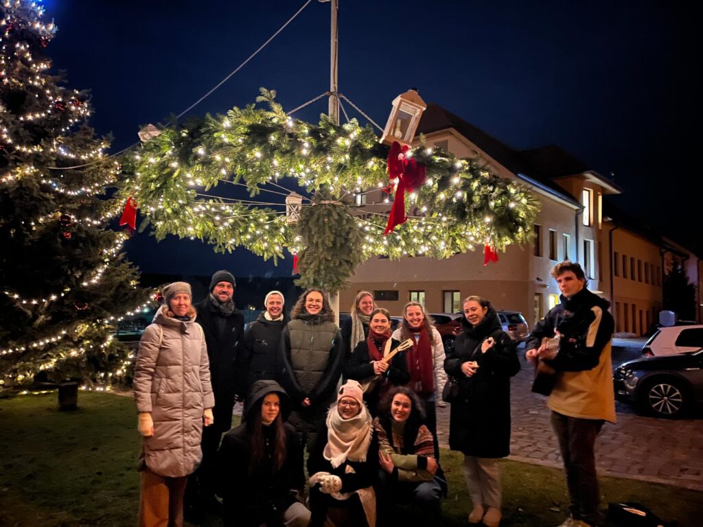 A právě v tomto duchu se i naši studenti sešli v neděli 15. 12. 2024 k modlitbě u adventního věnce, který byl zavěšený u Turistického centra na Velehradě.