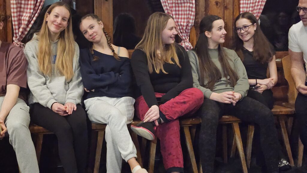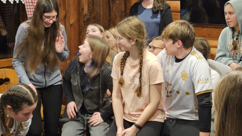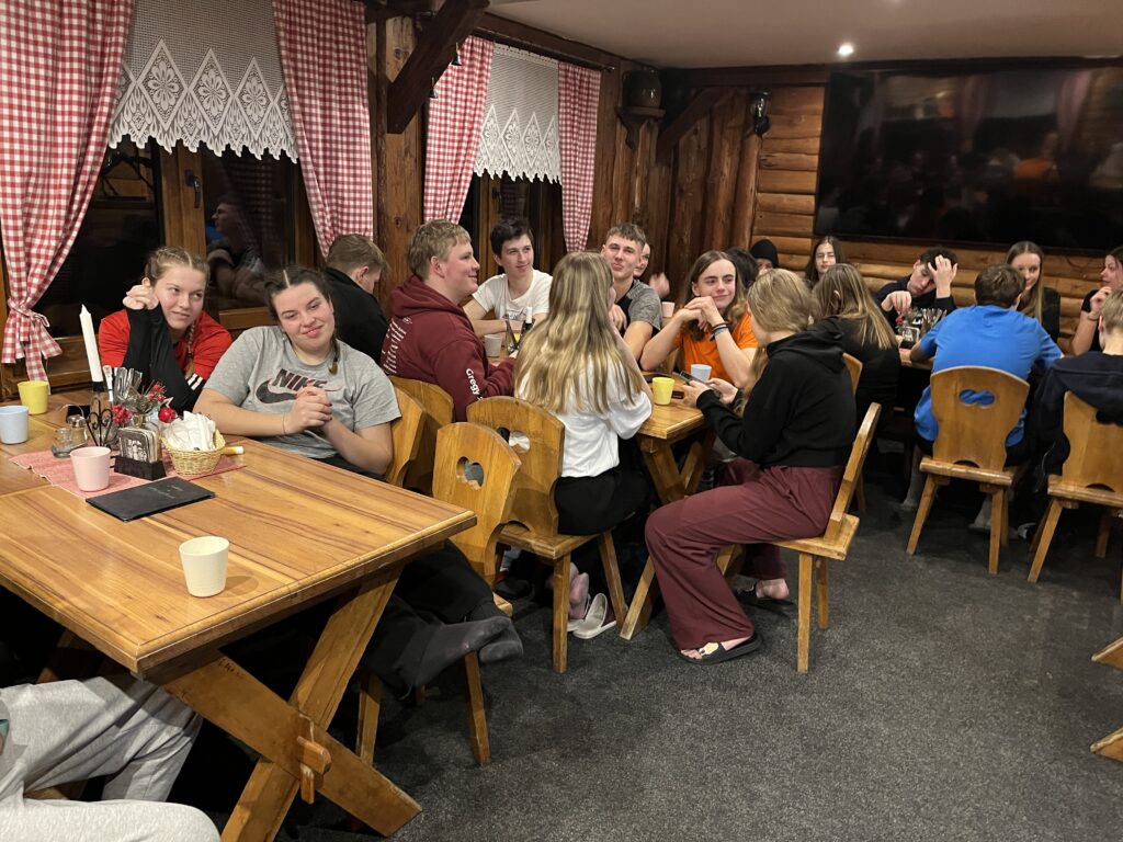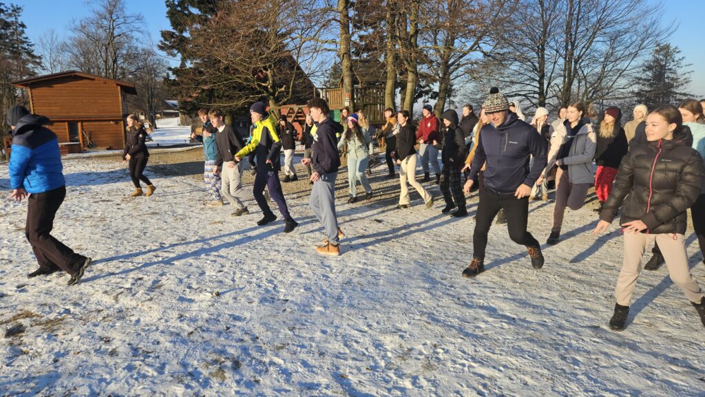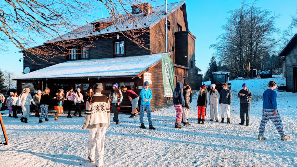 Po příjezdu pod sjezdovku nás čekala cesta na chatu. Každý náš den začínal rozcvičkou a dobrou snídaní. A pak jsme celé dny trávili na svahu vždy s přestávkou na oběd. Večery byly naplněny hrami, které jsme připravovali v rámci lyžařských skupinek, přednáškami učitelů a také Horské služby.