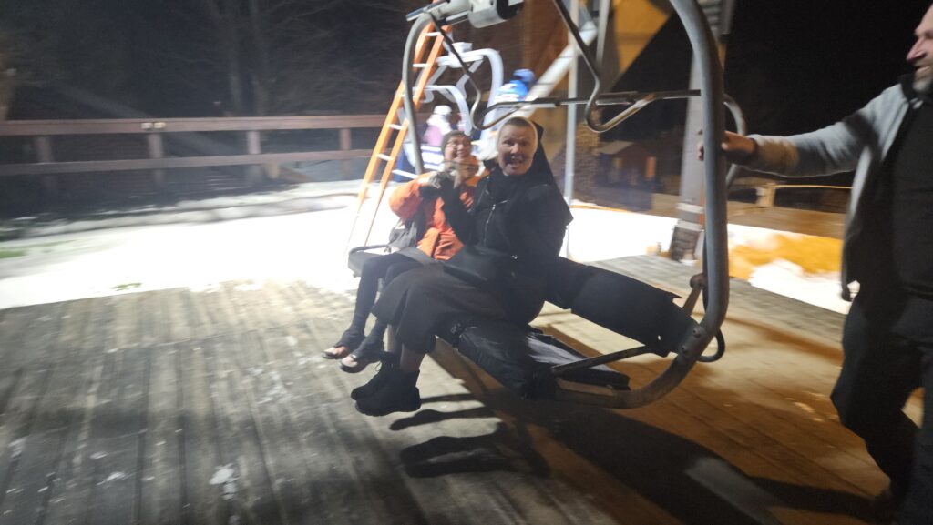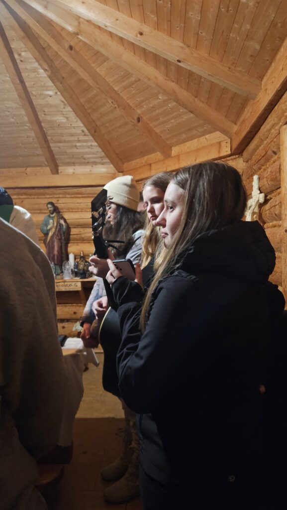 Ve středu ráno jsme si krásně užili ranní „manšestr“, bobovou dráhu a odpoledne jsme se vydali na vrchol Veľká Rača, ze kterého jsme potom sjížděli na lopatách (většina z nich náročnost sjezdu nevydržela). Část z nás si také vyzkoušela sedět venku v mrazu v kádi plné vroucí vody nebo pracovat s lavinovými „pípáky“. Přijel za námi i otec Radim a oslavil s námi dvě mše svaté.