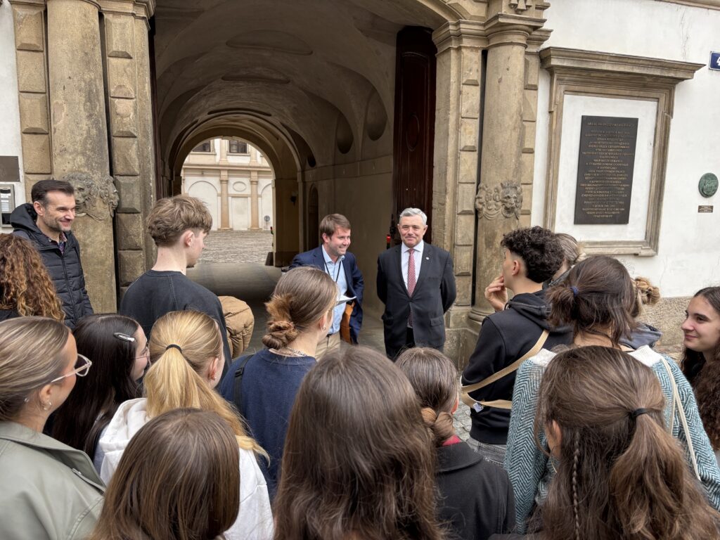 V pondělí jsme začínali opět historicky, a to návštěvou Židovské čtvrti. V rámci komentované prohlídky jsme si prošli hlavní synagogy této čtvrti, a také hřbitov. Po prohlídce jsme dostali pauzu na oběd a společně jsme se opět setkali na prohlídce Arcibiskupského paláce na Hradčanském náměstí. Odpolední program jsme zakončili mší v Katedrále sv. Víta, následnou prohlídkou katedrály a menší procházkou noční Prahou.