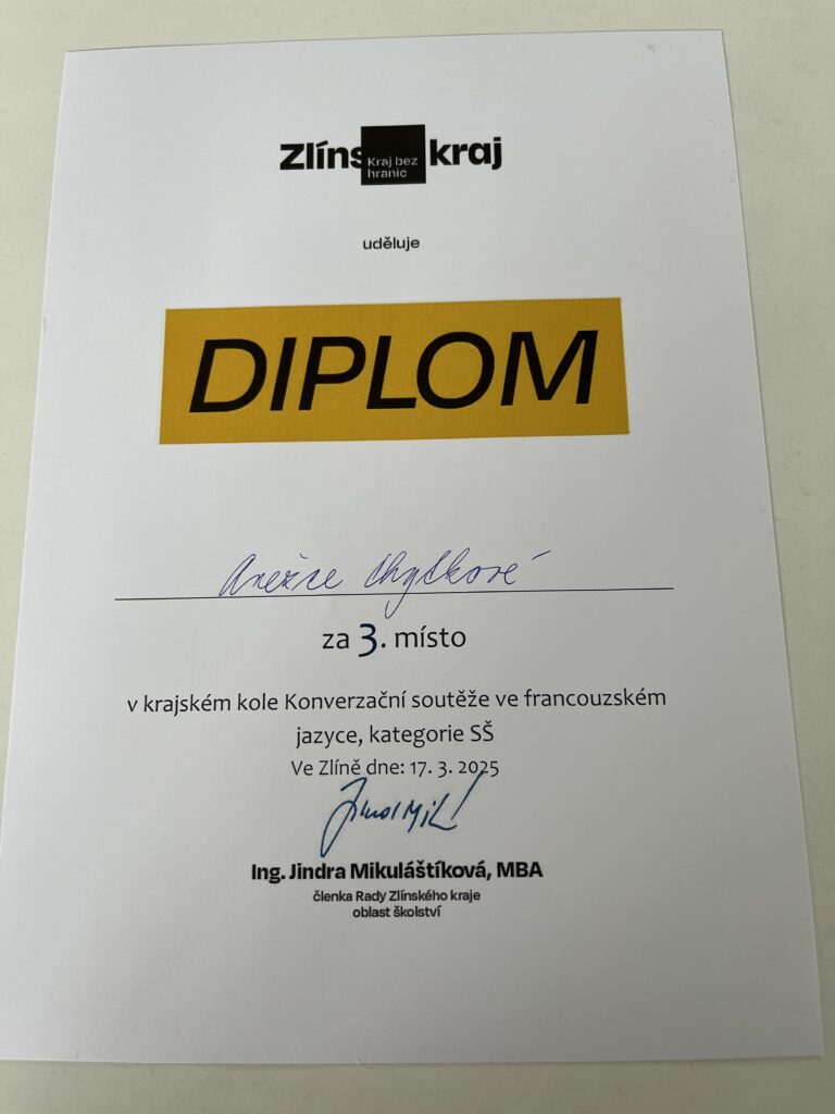 Statečně se poprala s popisem obrázků i monologem na téma „les voyages“, na které dle nových pravidel soutěže neměla ani minimální čas na přípravu. A po skvělém výkonu si ze Zlína odvezla úžasné 3. místo.