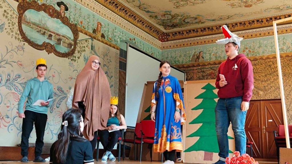 Členové dramatického kroužku se sešli v prostorách školy, aby společně připravili nadcházející divadelní představení. Dramaťák není jen o naučení se textu ze scénáře a práci na jevišti. Herci se aktivně podílí na motivu divadelního představení, vizualizaci a tvorbě scénografie, výrobě kostýmů, atd. Každý je součástí procesu – a právě díky tomu to celé dává smysl.