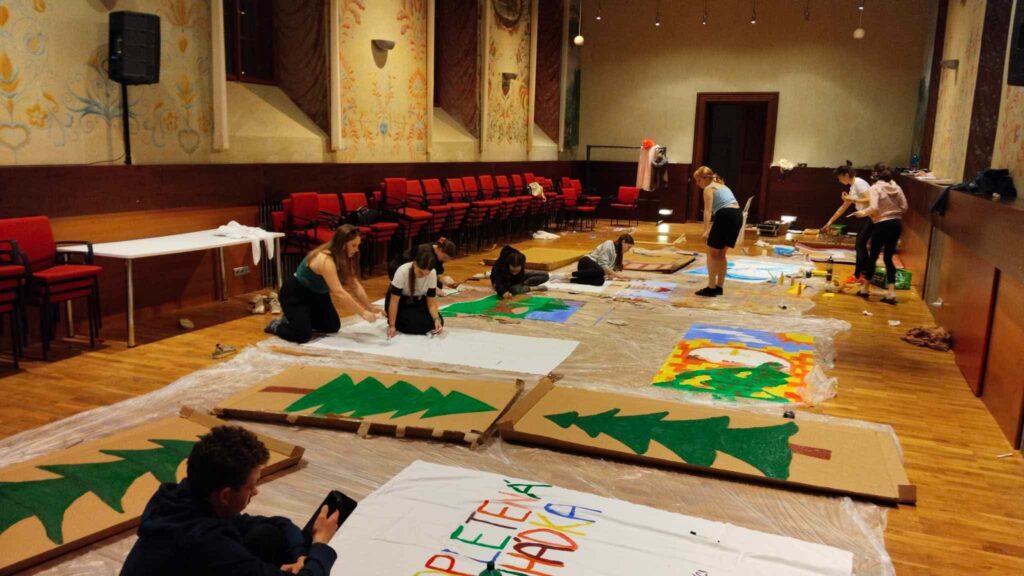 Páteční odpoledne jsme věnovali tvorbě kulis a rekvizit, které se stanou nedílnou součástí samotné inscenace. Sobotní dopoledne jsme se ponořili do jednotlivých scén a pracovali na jejich jevištním ztvárnění. Udělalo se obrovské množství práce – a já věřím, že se diváci mají opravdu na co těšit!