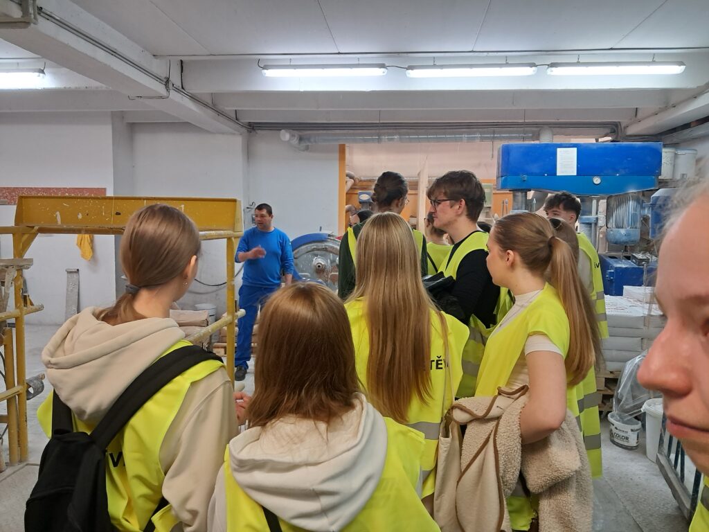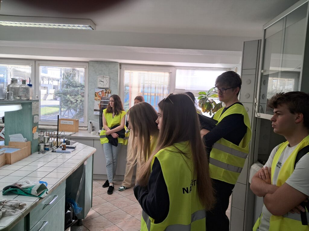 Vedoucí výroby pan Žitňanský nás po úvodním slovu ohledně bezpečnosti práce a pohybu ve výrobě provedl hlavní výrobní halou. Začali jsme velínem a pokračovali přes obě části výroby, míchání a plnění nátěrových hmot jak vodou ředitelných, tak rozpustných v nepolárních organických rozpouštědlech. V přízemí budovy jsme zhlédli činnosti v plnicích a skladovacích prostorách. Nevynechali jsme ani kontrolní a zkušební laboratoř a zajímavou exkurzi jsme zakončili před louhárnou, kde se čistí pracovní nádrže a kontejnery z výroby.