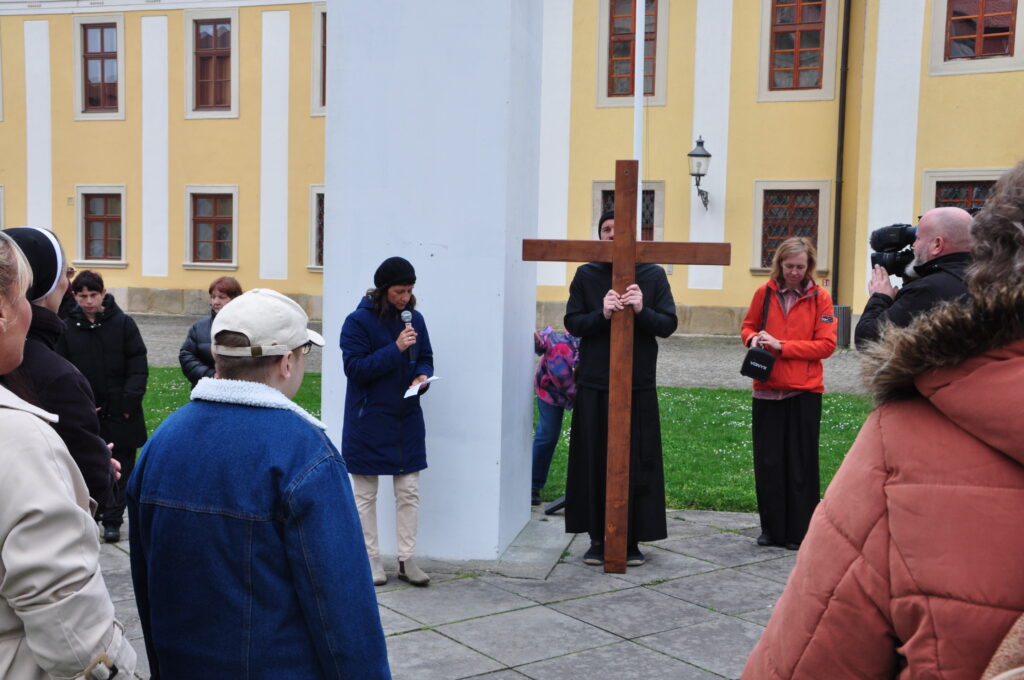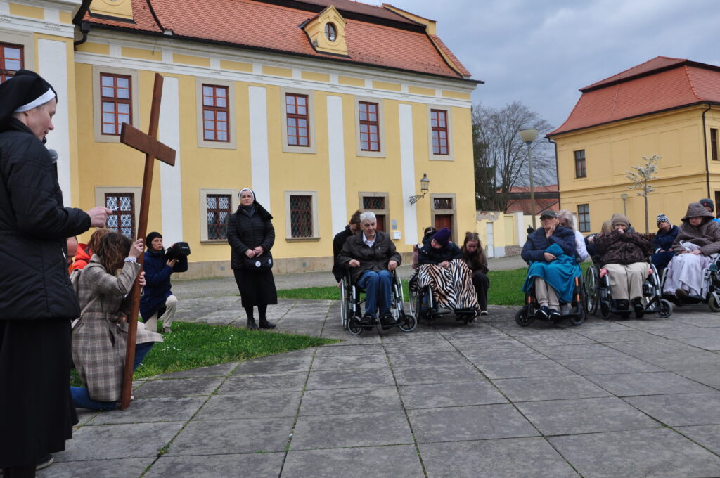 Pošmourné úterní ráno se vůbec nechtělo probudit ve slunný dubnový den. Ještě u oběda se rozproudila debata jaká je předpověď. Otec Radim měl obavy zda nezmokneme…. A nezmokli jsme. Tradiční křížová cesta Velehradem ve společenství sociálních zařízení, farnosti a naší školy důstojně začala u kašny na Nádvoří. Otec Radim nás vyzval, ať se zamyslíme za koho chceme obětovat tuto cestu kříže… za sebe, za Tebe, za nás…. Každý podle sebe. Čtrnáct zastavení, čtrnáct ohlédnutí za utrpením Božího Syna, čtrnáct vykročení do naděje, kterou kříž přináší. Děkujeme všem za hojnou účast a nezapomeňte si dát do diáře, že naše společenství se sejde za rok ve Svatém týdnu v úterý v 15 h na Nádvoří u kašny.