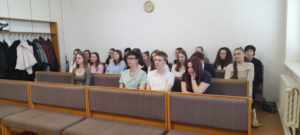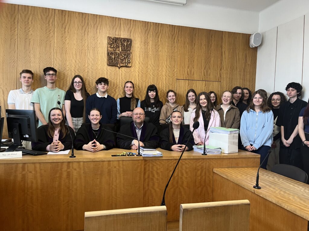 Dne 14. 4. 2025 se skupinka žáků 3. ročníku zúčastnila exkurze na Okresním soudu v Uherském Hradišti. Zde proběhlo zajímavé jednání, ve kterém se jednalo o ublížení na zdraví. Byl zde přítomen obhájce, státní zástupce, obžalovaný a soudní lékař. Po soudním přelíčení následoval rozhovor se státním zástupcem a samosoudcem Mgr. Přibylem. Pan soudce Přibyl studenty obohatil o řadu zajímavých zkušeností ze své praxe a seznámil je se studiem právnických oborů.