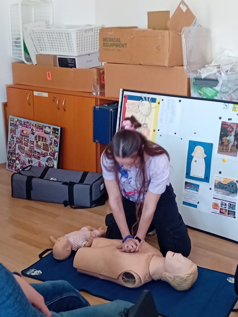Velkým přínosem bylo zopakování a připomenutí zásad první pomoci. Měli jsme možnost vyzkoušet si různé techniky na modelech, což nám pomohlo lépe pochopit, jak správně poskytnout pomoc v reálných situacích. Tato praktická část nás velmi zaujala a byla skvělou příležitostí procvičit si dovednosti.