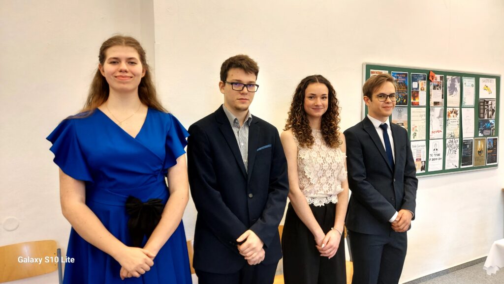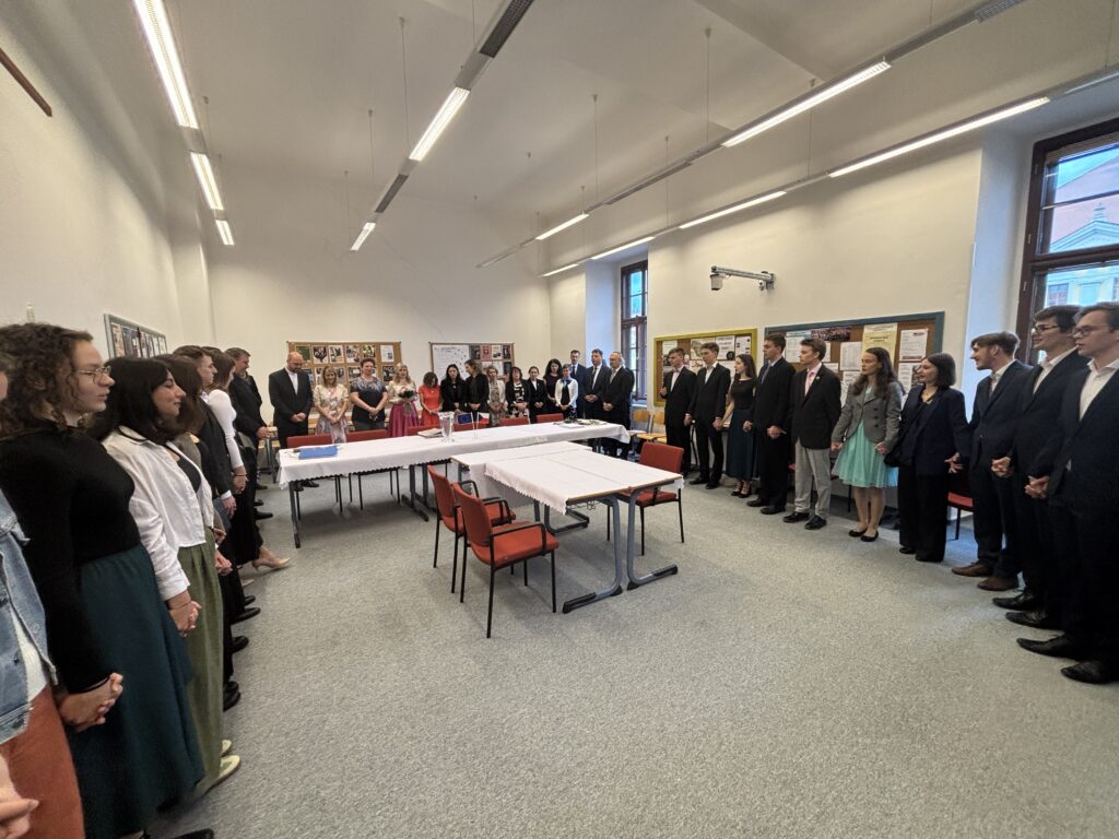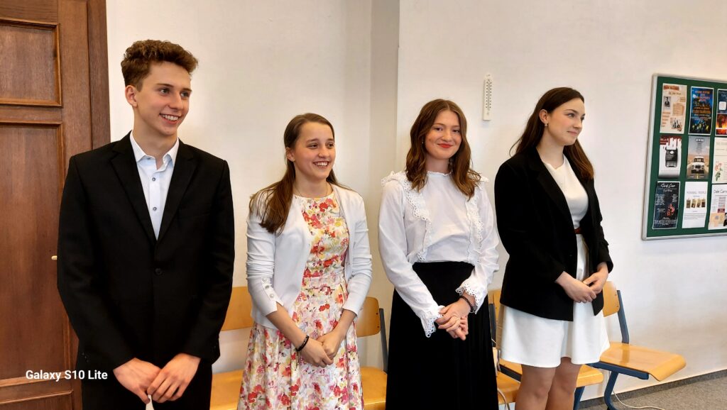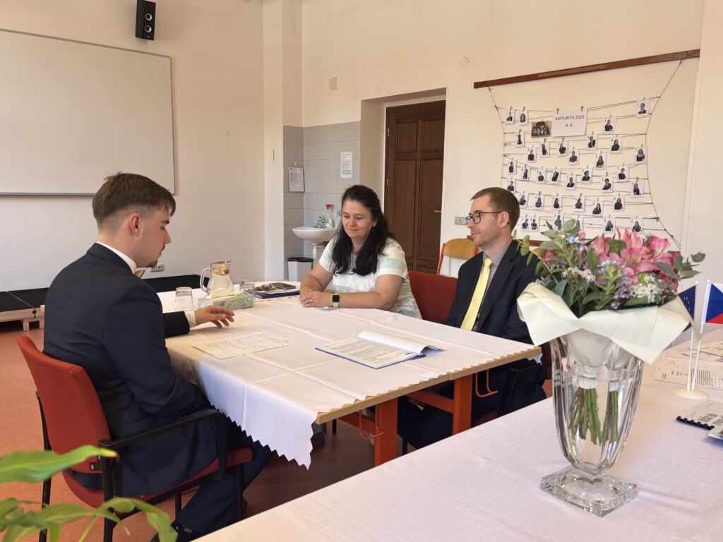 V týdnu od 19. do 23. května 2025 proběhly v naší škole ústní maturitní zkoušky. Letos maturovaly třídy 4.A a 4.B, celkem zkoušku dospělosti úspěšně absolvovalo 68 žáků.