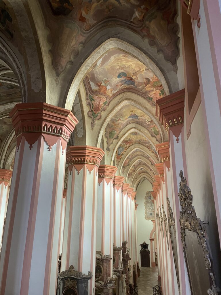 Ve čtvrtek nás po běžné dopolední zkoušce obou sborů čekala prohlídka štolového systému kláštera, vybudovaného pro účely odvodňování a kanalizace, kde na nás čekalo mimo jiné i menší překvapení v podobě několika zástupců zdejší populace ropuch. Následně jsme navštívili vnitřní prostory kláštera, včetně rajské zahrady, jedné z klášterních cel a refektáře. V rámci večerního programu jsme dostali příležitosti poslechnout si přednášku od spisovatele Marka Tomana, autora komiksové knihy Odsunuté děti, pojednávající o osudech dětí a jejich blízkých při odsunu sudetských Němců z území Československa. Přednáška nás i přes jazykovou bariéru, se kterou se potýkala část přítomných, všechny velmi zaujala a jistě jsme si z ní každý něco odnesli.