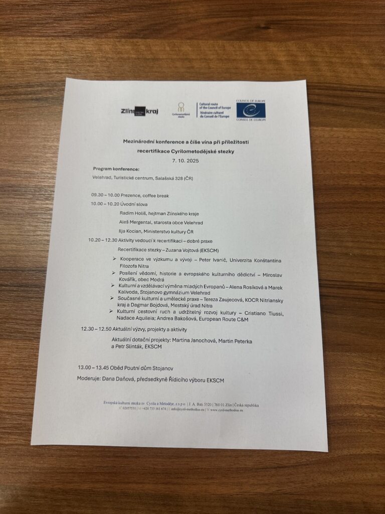 V úterý 7. 10. jsme vystoupili v Turistickém centru na Velehradě na mezinárodní konferenci, kterou organizovala Evropská kulturní stezka sv. Cyrila a Metoděje. Konference se konala pod záštitou Zlínského kraje a Rady Evropy.