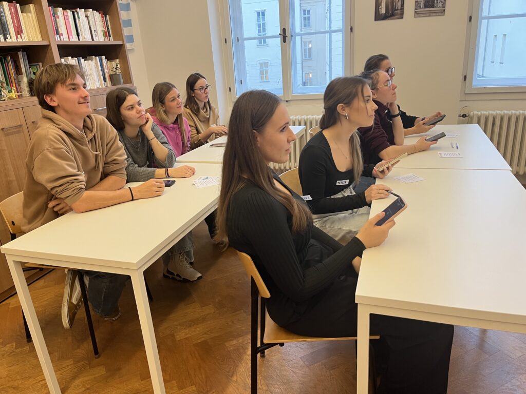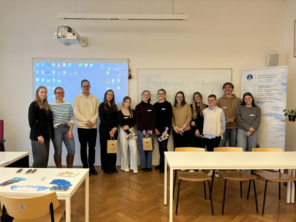 Po představení možností, které francouzština nabízí, jsme si zahráli hry, kahoot i „bojovku“ v prostorách katedry a to vše samozřejmě francouzsky. Poté jsme ještě nahlédli do dalších prostor filozofické fakulty a na nádvoří se setkali se spolužáky němčináři. Ti se k nám letos připojili, absolvovali ale svůj program na katedře germanistiky.