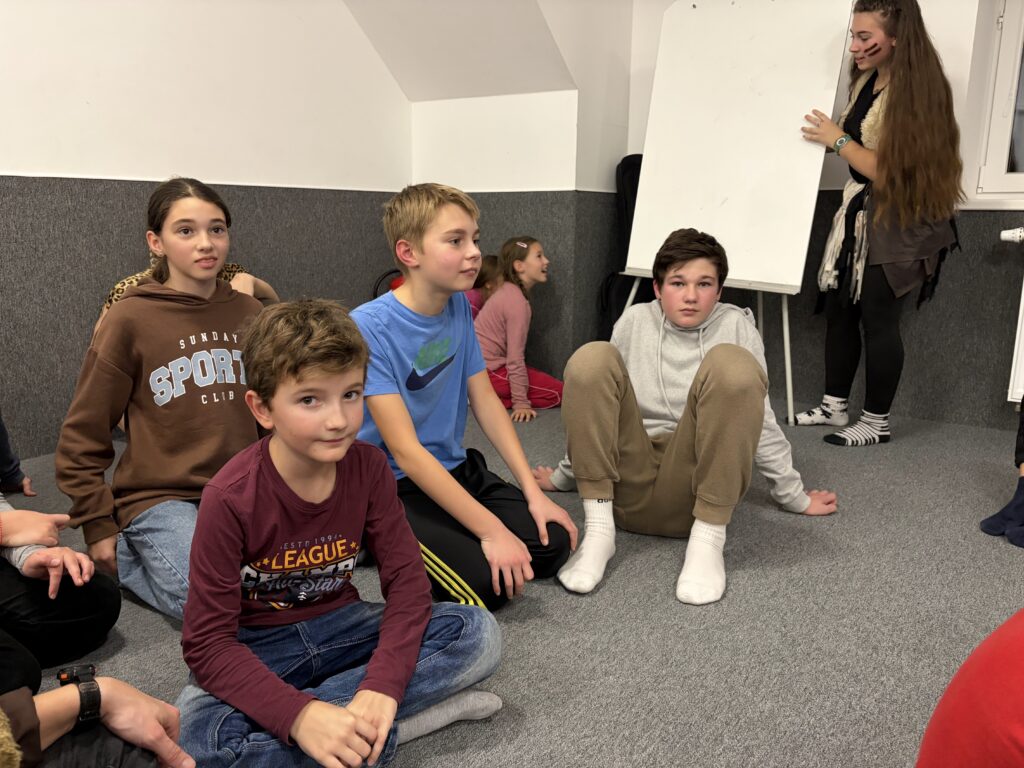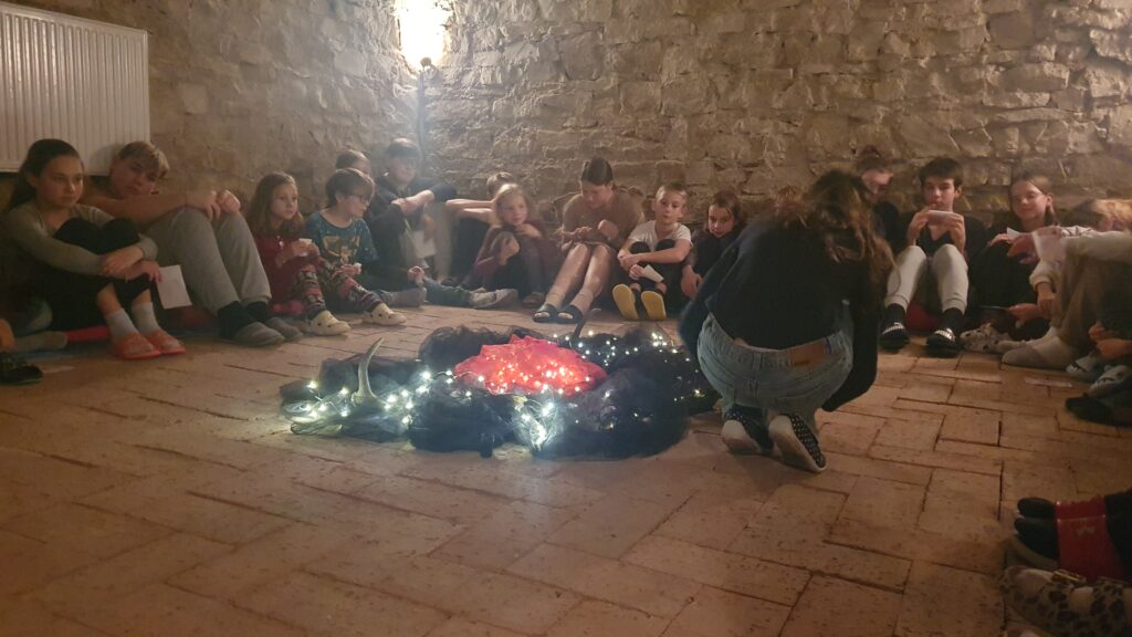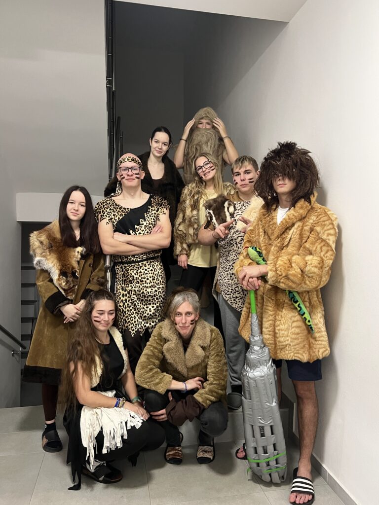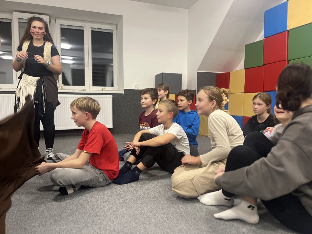 V pátek 28. listopadu děti na Korytné přivítali jeskynní lidé, seznámili je s jeskyní a jimi samotnými - byl tam např. Kámen, Kámen nebo také Kámen.
