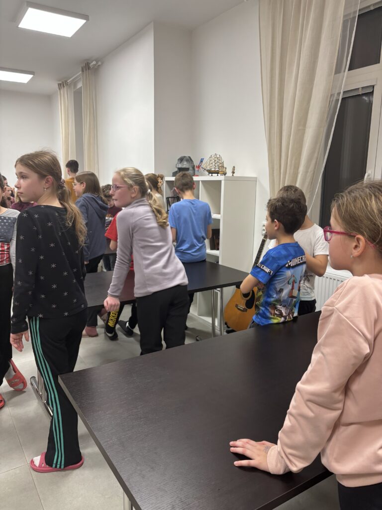 Následoval večer plný zábavných her jako hledání předmětů, nošení kelímků nebo házení míčků.