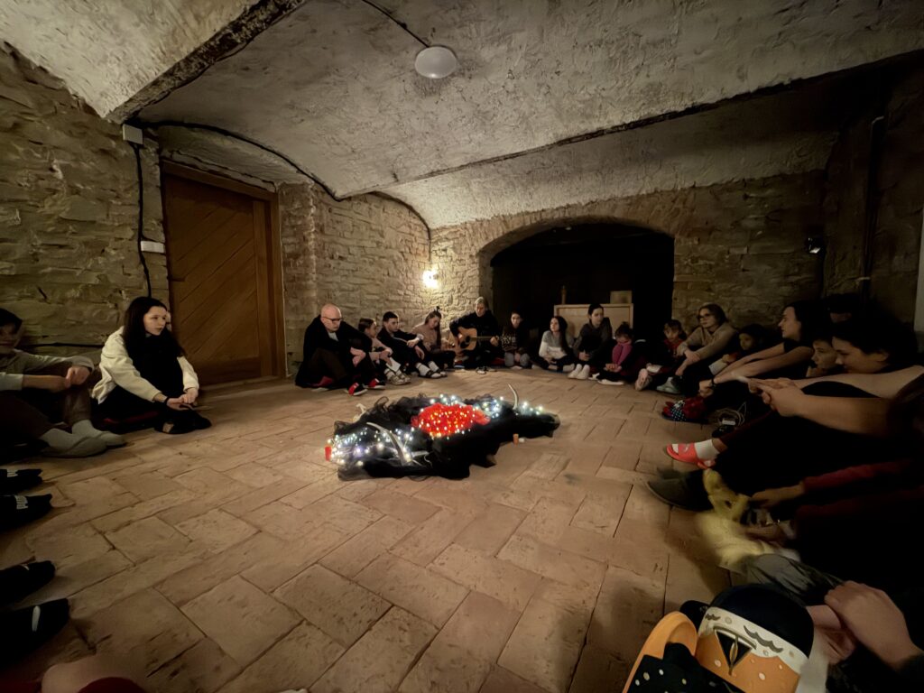 V neděli jsme vyráběli adventní věnec a zkoušeli písničky na mši, kterou jsme navštívili v místním kostelíku.