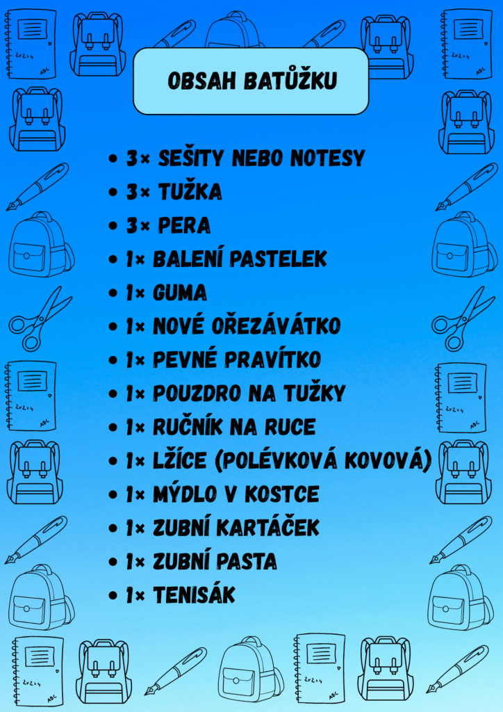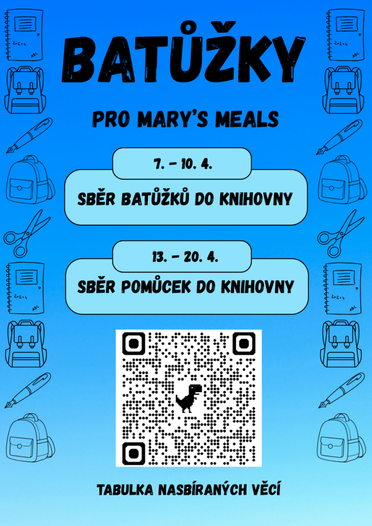 Batůžky můžete přinášet do knihovny od 7. do 10. dubna. Pomůcky jako obsah batůžku pak od 13. do 20. dubna.