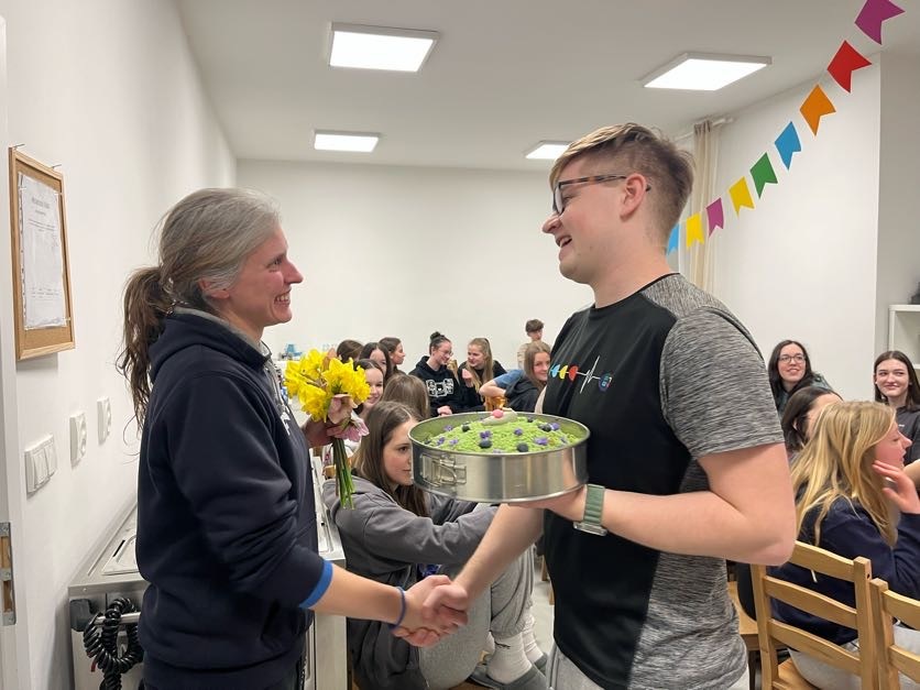 V neděli nás čekala tradiční mše svatá, tentokrát v místním kostele. Po návratu nás potěšilo milé překvapení v podobě přípitku, kterým jsme oslavili dokončení první poloviny kurzu.