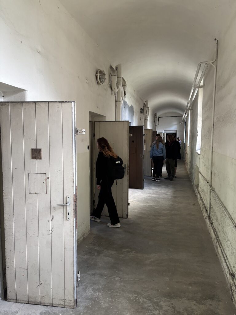 Ve středu 8. dubna jsme se skauty v doprovodu otce Josefa Biernáta navštívili věznici v Uherském Hradišti. Naše úžasná paní průvodkyně nás provedla celou budovou a poutavě nám přiblížila její historii i osudy lidí, kteří jí prošli. Během prohlídky jsme viděli spoustu zajímavých, ale místy i znepokojivých věcí – například samotky, které v nás zanechaly silný dojem. Zaujaly nás také různé detaily z minulosti, včetně nápisů dochovaných na stěnách, jako byl známý nápis v kapli „Proletáři všech zemí spojte se!“ Celá návštěva pro nás byla velmi silným a poučným zážitkem, na který budeme ještě dlouho vzpomínat.