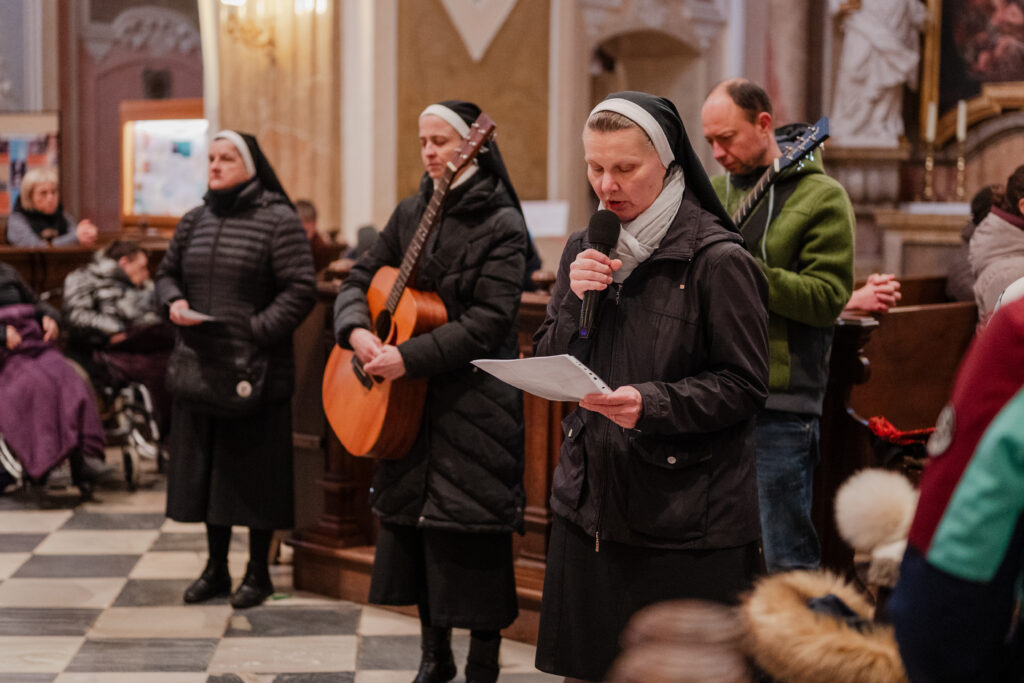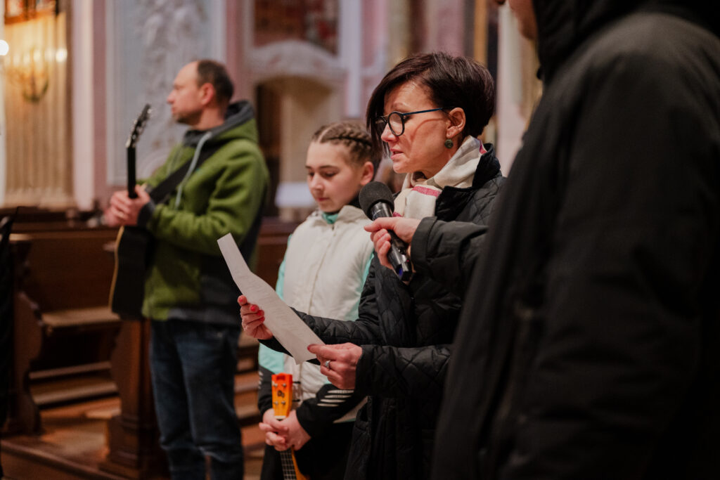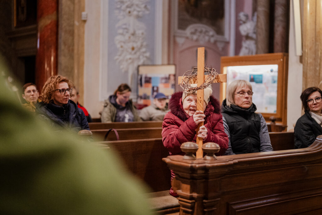 Křížová cesta Velehradem ve Svatém týdnu se tentokrát konala v bazilice, protože bylo deštivo. To ale vůbec neubralo na kráse z propojení všech.