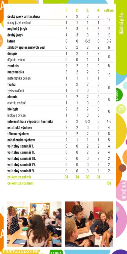 Jsme malé gymnázium s obrovskými možnostmi. U nás se nikdo nenudí. I když zrovna nestuduješ, máš spoustu příležitostí se rozvíjet.